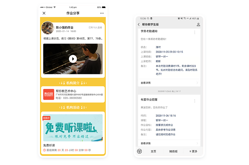 • 通過朋友介紹使用“幫你教”,節省了很多人力、財力。系統全方位統計學員、老師信息,包括課時安排和工資計算,都可隨時隨地操作。我經常不在機構,但管理起來很放心。有問題售后老師也是及時幫助解決,非常值得推薦。